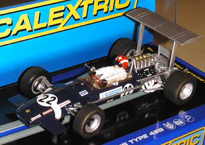 Three cars arrived from SCALEXTRIC, starting with the SR version of the Audi R8 GT3 in Spider livery as raced at Bathurst. Patrick Mortimers Mini Challenge car is sponsored by SCALEXTRIC and is now available in stock, and the Lotus 49B of Jo Siffert has arrived. This car has the high wings as used in 1968, plus the oil tank and radiator mounted above the gearbox.
