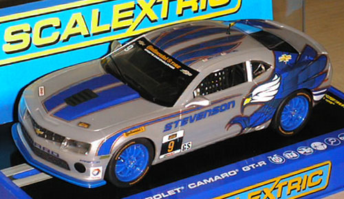 SCALEXTRIC delivered a new version of the Chevy Camaro, this one in the silver Stevenson Eagle livery. This car is a fully detailed version.