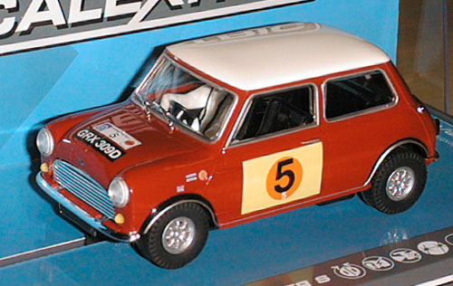 New in from SCALEXTRIC are three new models. The Boss Mustang is an Australian favourite as it was driven by Allan Moffat. The Aston Martin V12 Vantage is the ELMS car in bright red & white livery. Our favourite is the classic Mini Cooper S driven by Graham Hill on the 1966 RAC Rally. The unusual door plates are because the nevent was sponsored by the Sun Newspaper and the big oraneg blot was their logo at the time. Don't be disturbed by the other side of the car, they only had race numbers on one side at this event.