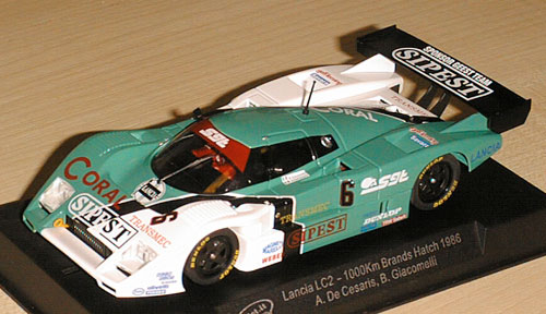 SLOT.IT sent just one new car, the Lancia LC2 in the unique Coral Sipest livery used at Brands Hatch 1986. We all like these cars with their traditional Martini stripes but this one has a very 'Leyton House' feel about it. Of course it is just as fast as all the other Lancia LC2 models, and we have another delivery on the way.