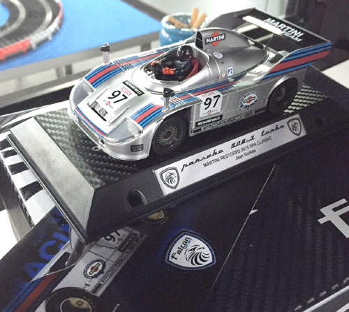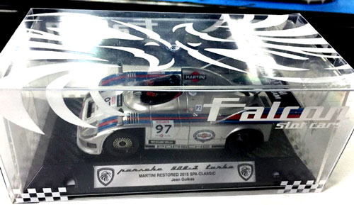 The Porsche 908 Turbo was one of the cars, alongside the Rondeau, that was proposed by Vulcan. A lot of work must have been done because this previuosly unseen car is looking very good in the pictures, and is now the first car to be listed by Falcon Slot. We have only seen this silver Martini version but there must be others lining up for later release.