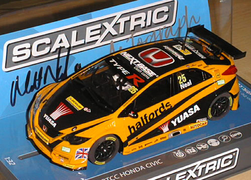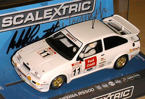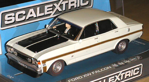 Four new cars arrived from SCALEXTRIC - and they are all Limited Editions. First, from the catalogue, is the Jaguar E Type Goodwood twin-pack. Two nice Lightweight cars that are original racers, but note that this set is already completely sold out fromSCALEXTRIC so we won't be getting any more - move fast if you didn't make an advance order ! The next two cars are in the Autograph Edition series, a Ford Sierra RS500 Cosworth in Ford Credit livery and signed by Rob Gravett, and the BTCC Honda in Halfords colours signed by Matt Neal. Availability of these is very limited like all the Autograph series cars. Lastly, we have a classic Ford Falcon XW street car which is not available in the UK as it is a limited release for Australia and the USA only. We have just a couple left after filling our advance orders so if you don't want to import one yourself you had better be quick !