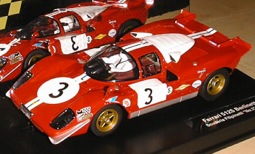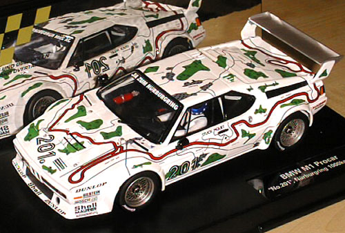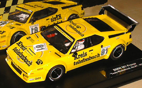 CARRERA sent a variety of cars in both 1/24 scale and 1/32 scale, and they are all Digital models. In the larger 1/24 scale we have a new Ferrari 512S in Filipinetti livery, plus a pair of BMW M1 Procars. The # 201 car has a Nurbringring circuit map covering the car, so you won't mistake it for anything else. The yellow car has sponsorship from Kreis Telefonbuch and is a Team Winklehock entry.
